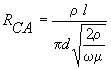 Para conocer las pérdidas resistivas del cuadro hay que considerar el efecto pelicular pues la resistencia en RF del conductor es bastante mayor que la resistencia en corriente contínua. La podemos conocer mediante la ecuación (ec2):