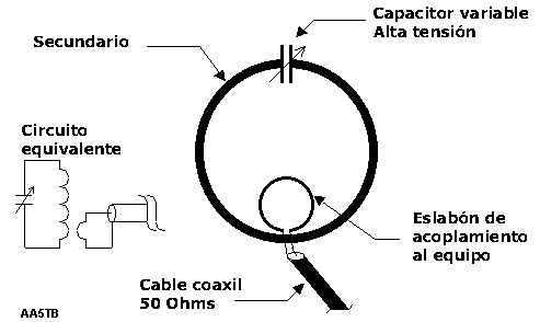 El eslabón de acoplamiento tiene un diámetro que será aproximadamente 1/5 a 1/6 del diámetro del loop para una correcta adaptación a una línea de 50 Ohms.