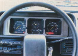 La dirección resulta bastante suave, precisa como toda cremallera, y casi estamos por decir que rápida, al menos; para lo que se estila hoy en día llega a las 3,5 vueltas, para un diámetro de giro no mucho mayor de 10 metros. En cuanto a los frenos, dimensionalmente son los de siempre, si bien ahora con todas las luces de aviso que ya se han hecho clásicas: advertencia de bajo nivel de líquido, y de desgaste de pastillas en los discos delanteros. Como en el caso de las correspondiente al desaparecido 131-E, las nuevas llantas (de plato similar a las del 132) no ofrecen más que 4 rendijas para la ventilación de los frenos; sabemos que en Italia se está estudiando una modificación de las mismas, tanto en diámetros de 13 como de 14 pulgadas, con el fin de mejorar dicha ventilación.